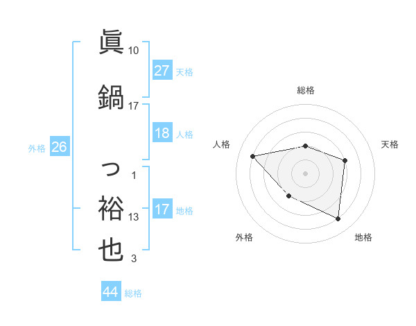 眞鍋 っ裕也さんを姓名の画数から五運を鑑定