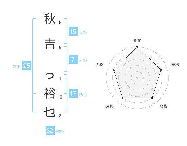 秋吉 っ裕也さんの総格は32画の5点!