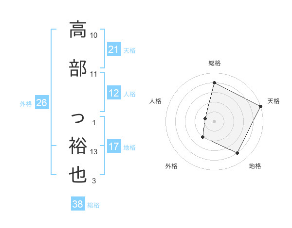 高部 っ裕也さんの総格は38画の4点!