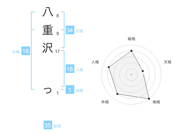 八重沢 っさんの地格は1画の5点!