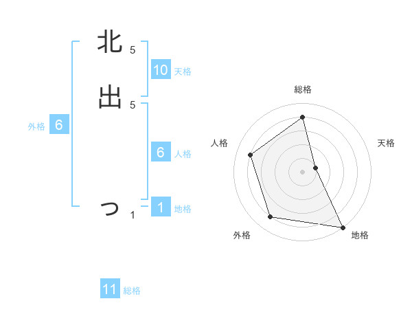 北出 っさんの地格は1画の5点!