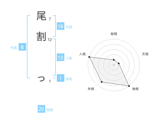 尾割 っさんの総格は20画の1点!