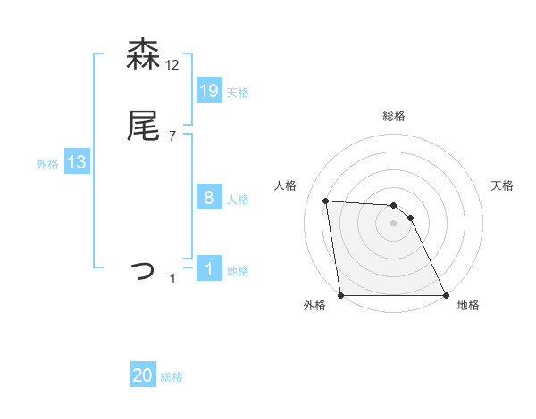 森尾 っさんの総格は20画の1点!