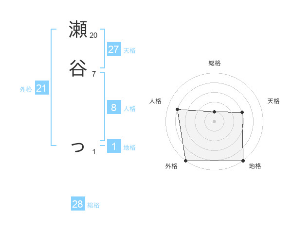 瀬谷 っさんを姓名の画数から五運を鑑定