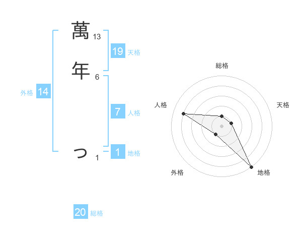 萬年 っさんの総格は20画の1点!