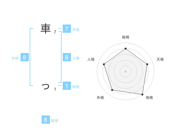 車 っさんの総格は8画の4点!