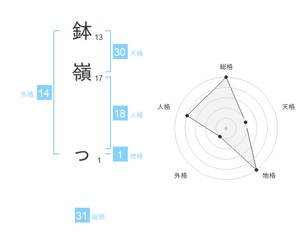 鉢嶺 っさんの総格は31画の5点!