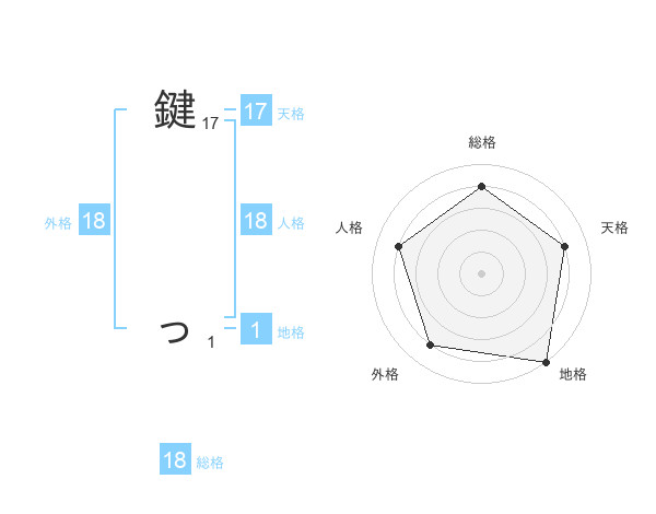 鍵 っさんの外格は18画の4点!