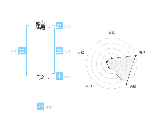 鶴 っさんの総格は22画の1点!