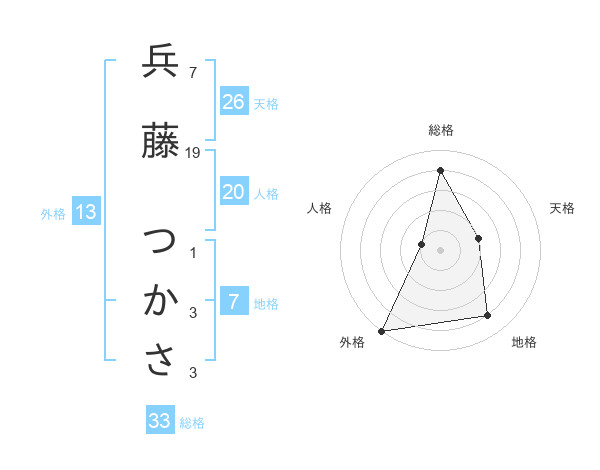 兵藤 つかささんを姓名の画数から五運を鑑定