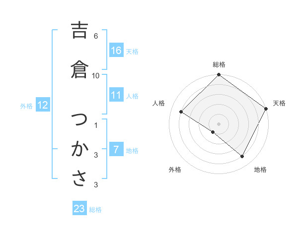 吉倉 つかささんを姓名の画数から五運を鑑定