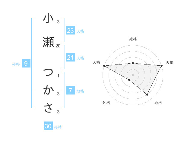 小瀬 つかささんの天格は23画の5点!
