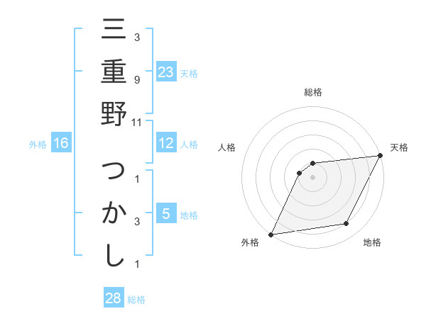 三重野 つかしさんを姓名の画数から五運を鑑定