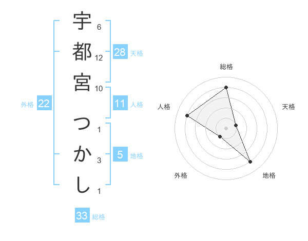 宇都宮 つかしさんを姓名の画数から五運を鑑定