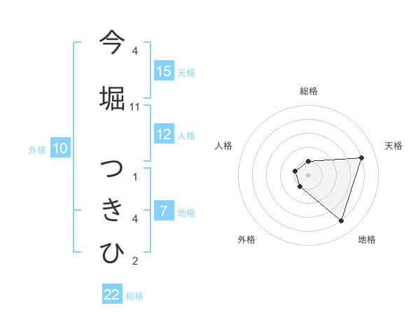 今堀 つきひさんを姓名の画数から五運を鑑定