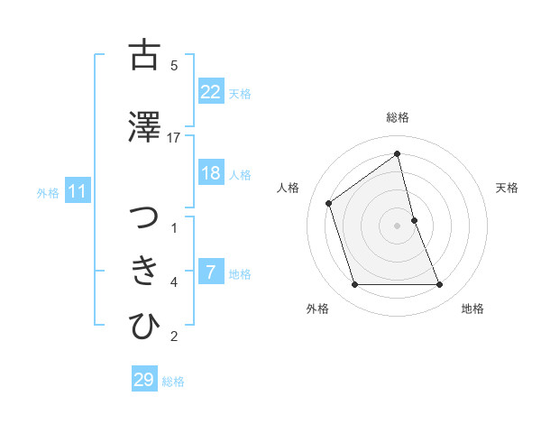 古澤 つきひさんを姓名の画数から五運を鑑定
