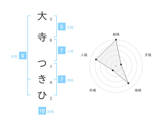 大寺 つきひさんの総格は16画の5点!