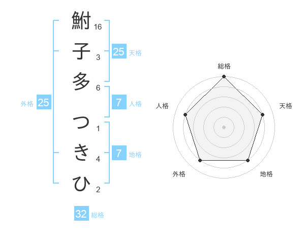 鮒子多 つきひさんの総格は32画の5点!