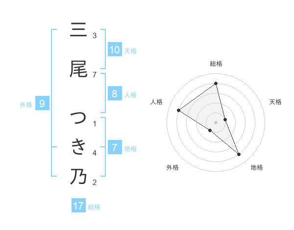 三尾 つき乃さんの総格は17画の4点!
