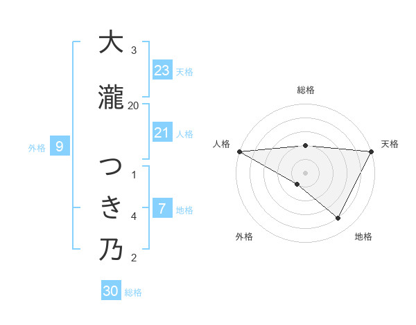 大瀧 つき乃さんの天格は23画の5点!