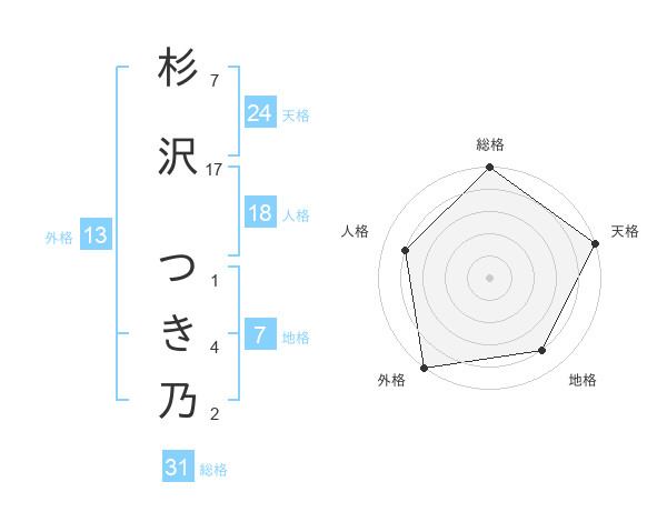 杉沢 つき乃さんを姓名の画数から五運を鑑定