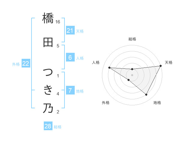 橋田 つき乃さんを姓名の画数から五運を鑑定