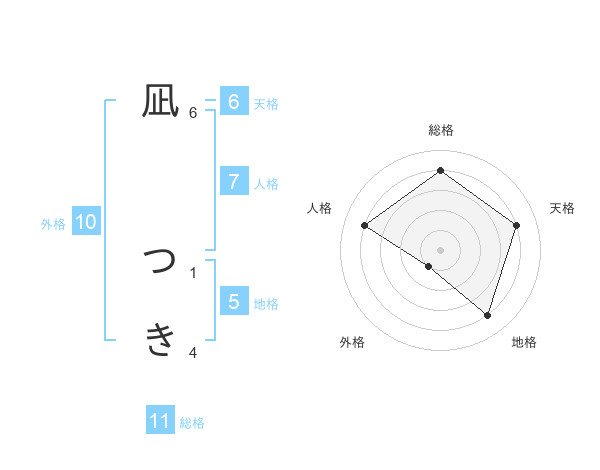 凪 つきさんの総格は11画の4点!