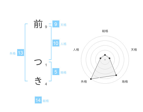 前 つきさんの外格は13画の5点!