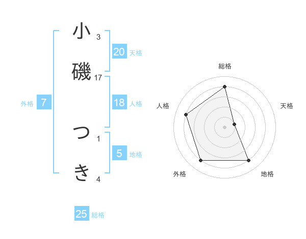 小磯 つきさんの総格は25画の4点!
