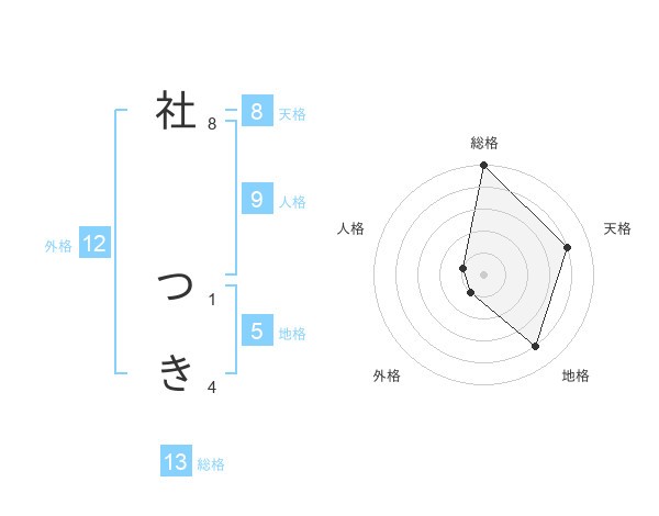 社 つきさんの総格は13画の5点!