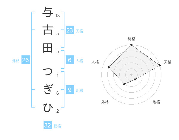 与古田 つぎひさんを姓名の画数から五運を鑑定