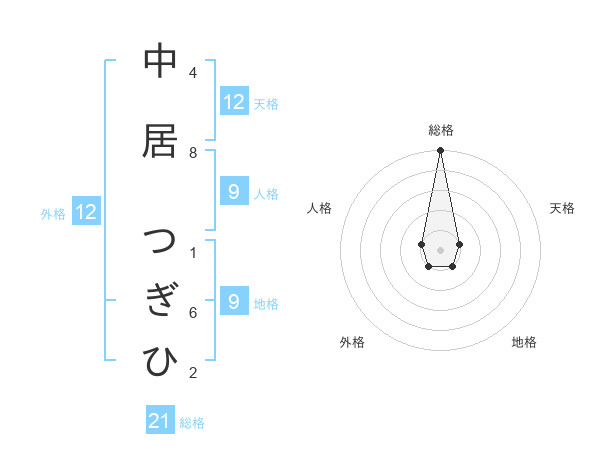 中居 つぎひさんを姓名の画数から五運を鑑定
