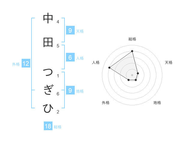 中田 つぎひさんを姓名の画数から五運を鑑定