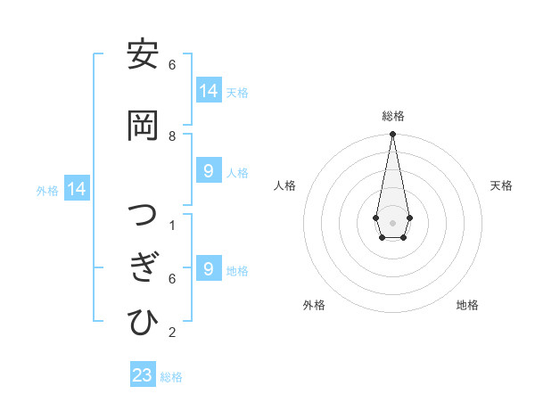 安岡 つぎひさんを姓名の画数から五運を鑑定