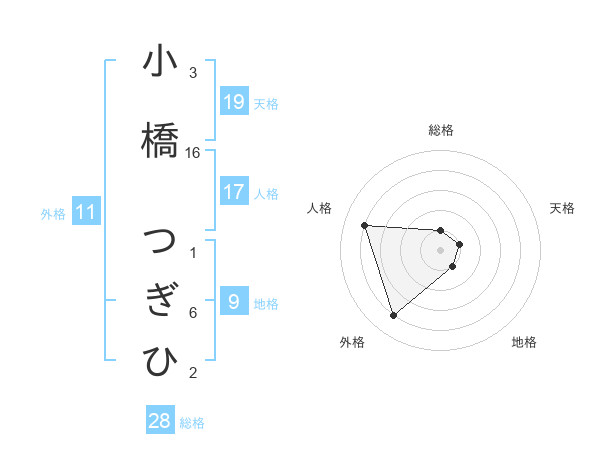 小橋 つぎひさんを姓名の画数から五運を鑑定