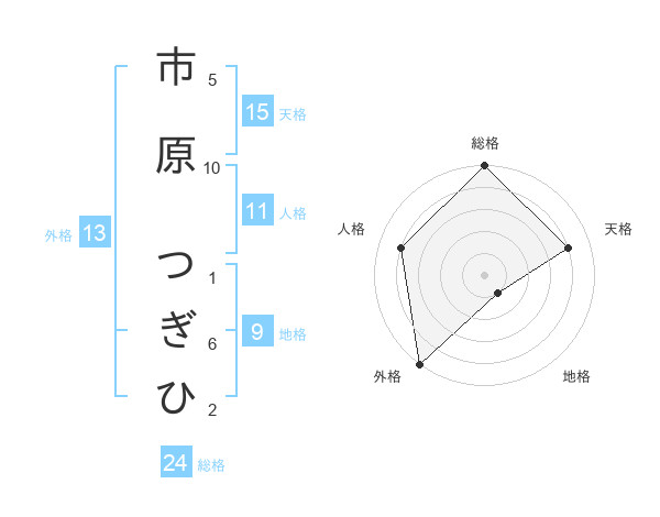 市原 つぎひさんを姓名の画数から五運を鑑定