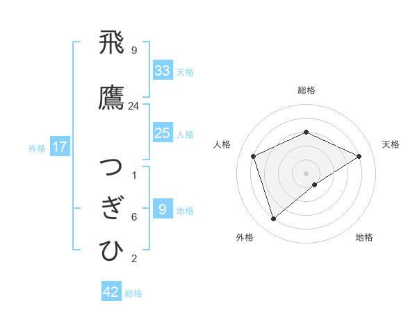飛鷹 つぎひさんの総格は42画の3点!