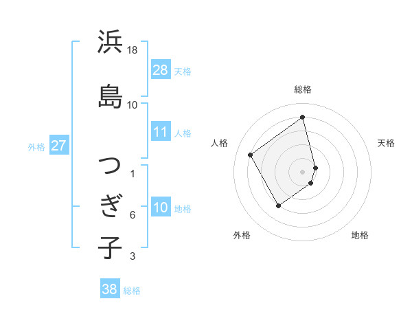 浜島 つぎ子さんの総格は38画の4点