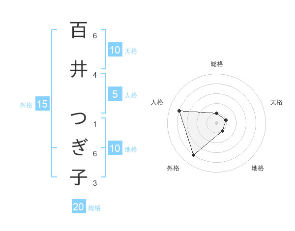 百井 つぎ子さんの外格は15画の4点!