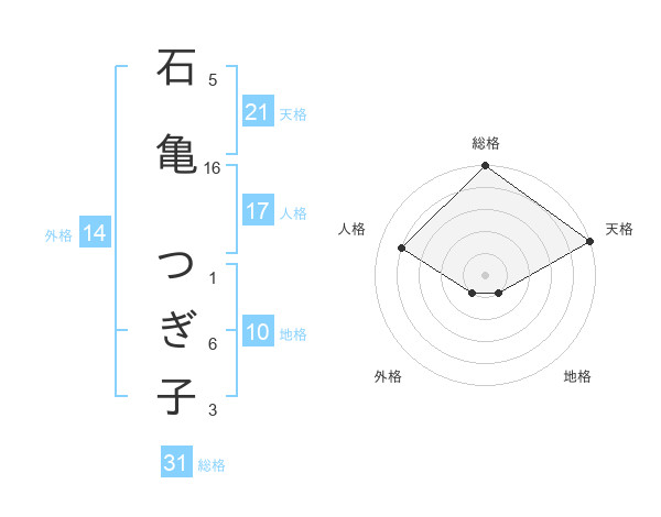 石亀 つぎ子さんを姓名の画数から五運を鑑定