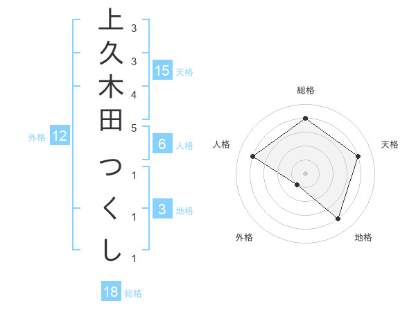 上久木田 つくしさんを姓名の画数から五運を鑑定