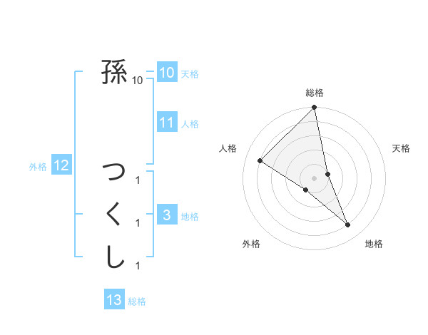 孫 つくしさんの総格は13画の5点!