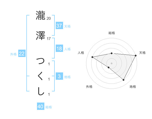 瀧澤 つくしさんの天格は37画の5点!