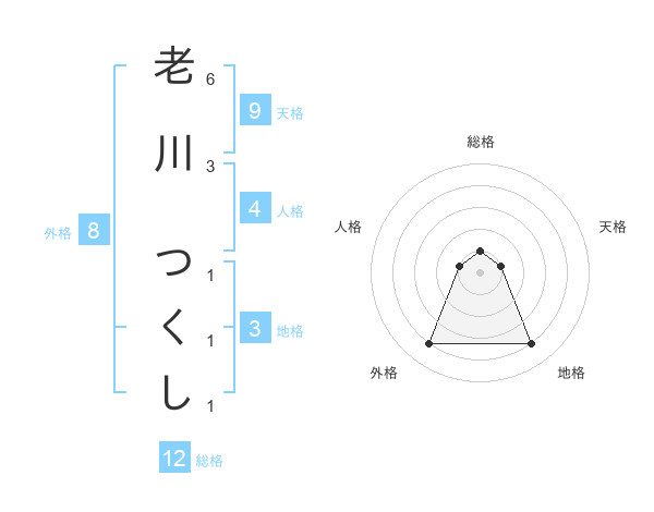 老川 つくしさんの総格は12画の1点!