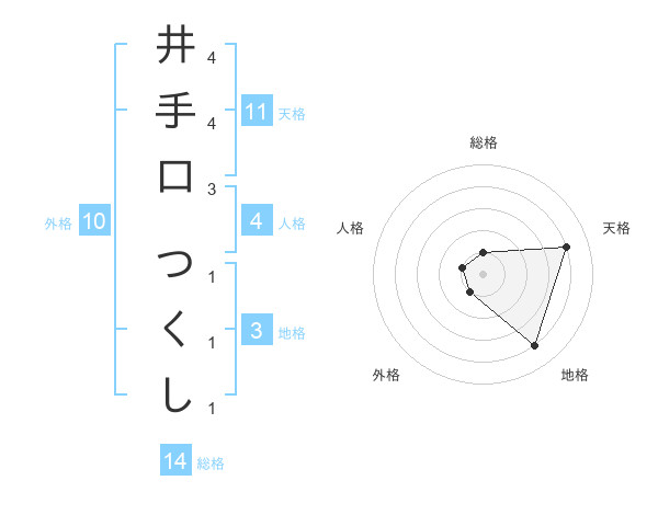井手口 つくしさんを姓名の画数から五運を鑑定