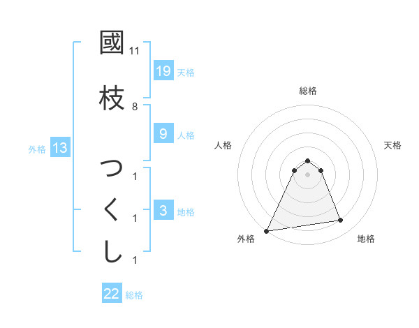 國枝 つくしさんの外格は13画の5点!