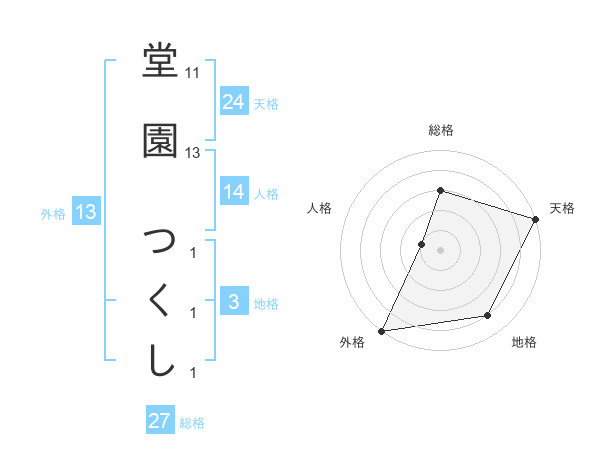 堂園 つくしさんを姓名の画数から五運を鑑定