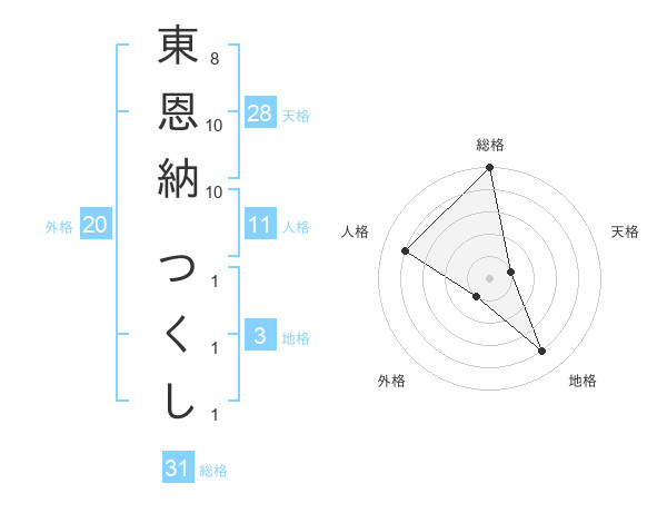 東恩納 つくしさんの総格は31画の5点!