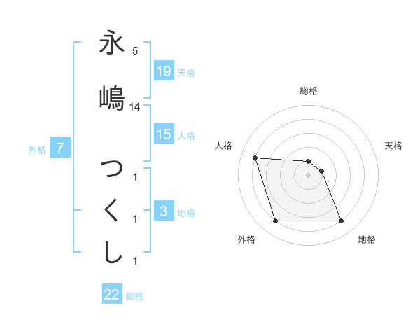 永嶋 つくしさんの総格は22画の1点!
