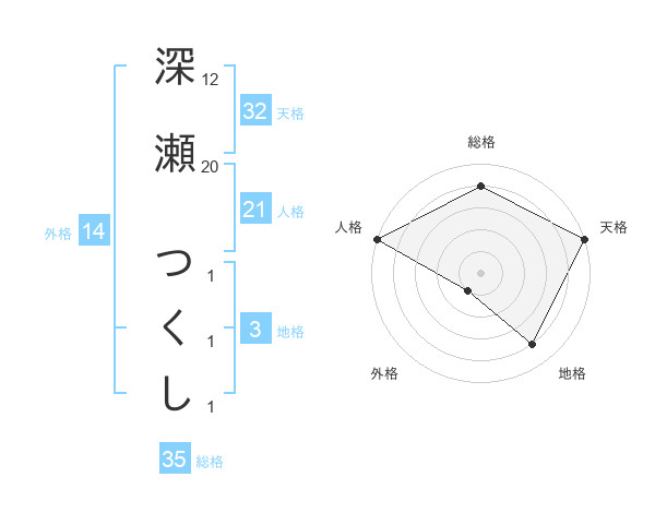 深瀬 つくしさんの天格は32画の5点!